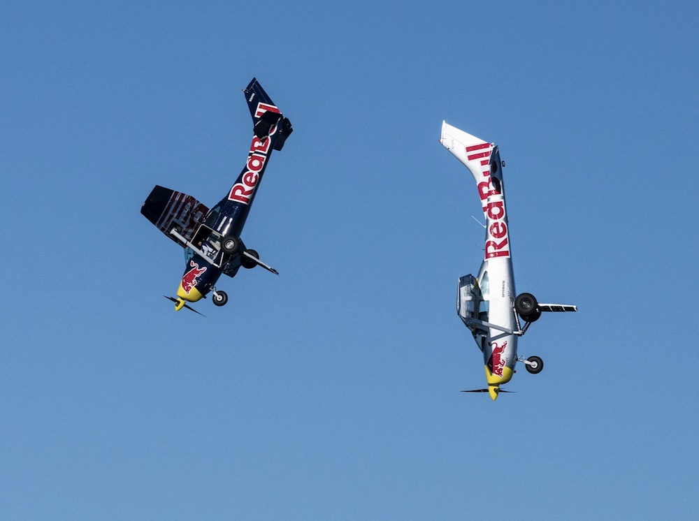 Die FAA hat die Lizenzen von zwei Piloten annulliert, die am 24. April 2022 im Flug ihre Flugzeuge tauschen wollten. Der Stunt ging schief, eine der beiden Cessna 182 stürzte ab. © Michael Clark/Red Bull Content Pool