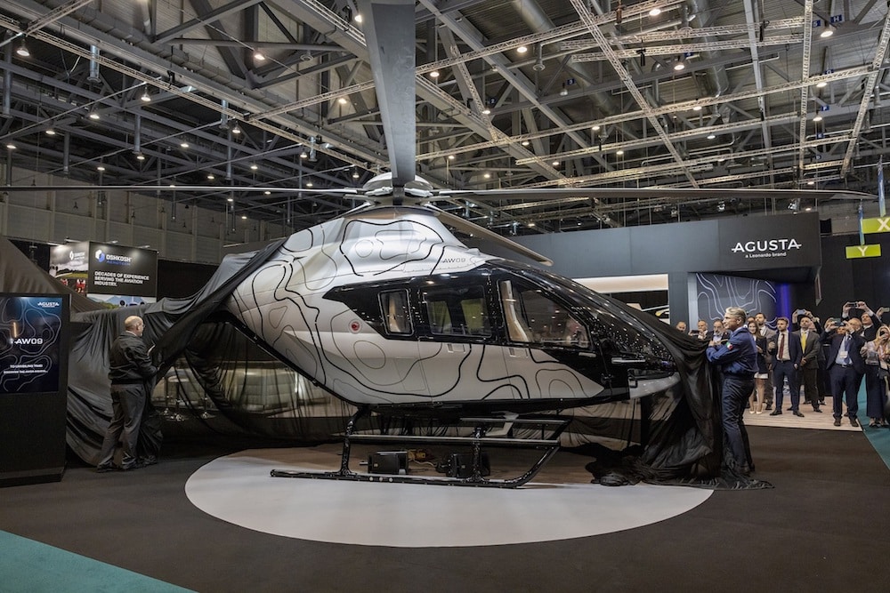 Die AW09 Agusta ist das neueste Modell im Produktportfolio des italienischen Herstellers Leonardo Helicopters. Es wurde heute auf der EBACE in Genf feierlich enthüllt und stieß auf reges Interesse des Publikums.