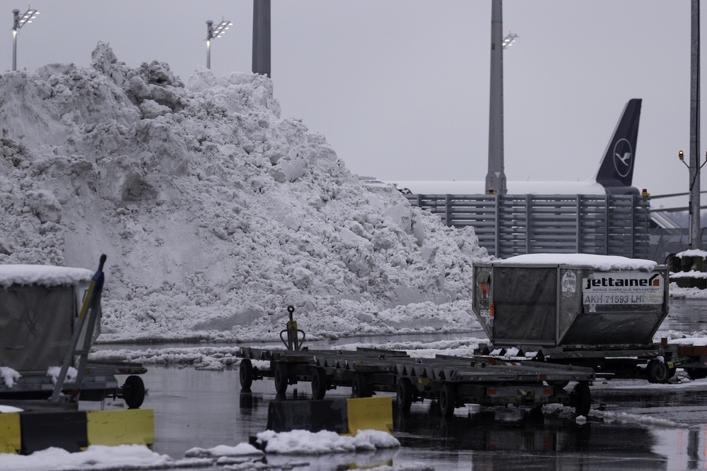 Heftige Schneefälle von bis zu 20 Zentimetern haben den Münchner Flughafen kurzfristig in eine idyllische Winterlandschaft verwandelt. Besonders der Nassschnee – umgangssprachlich auch Pappschnee genannt – stellt die Winterdienste immer wieder vor Herausforderungen. Anders als Pulverschnee enthält dieser einen höheren Anteil von Wasser welches das Räumen speziell von großen Flächen deutlich komplizierter und zeitintensiver gestaltet. Deutliche Verspätungen von bis zu 90 Minuten mussten speziell in den Morgenstunden in Kauf genommen werden, bevor die Winterdienste die Start und Landebahnen sowie die übrigen Verkehrsflächen des Flughafens weitestgehend schneefrei gemeldet haben.